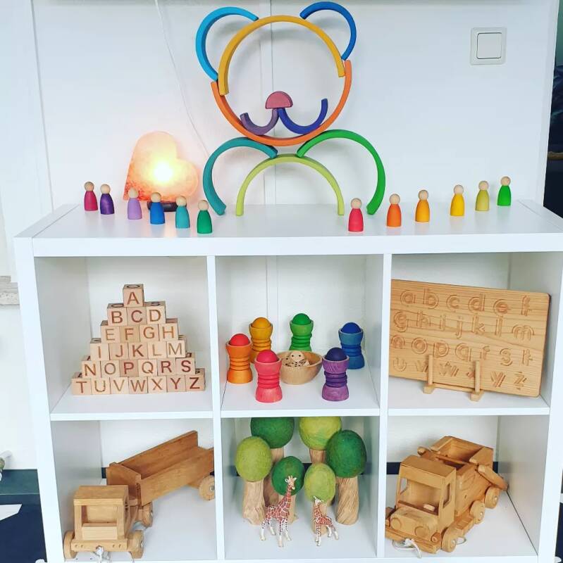 In mijn opvang is er vooral veel duurzaam houten speelgoed voorhanden. Grimms, grapat, een wobbel, stapelstein, papoose, sumblox, flockmen, olli ella poppenwagen, sleich dieren, david de kabouter, way to play autobanen, brio treinbanen, sarah silk zijden doeken en connetix magnetisch bouwstenen.